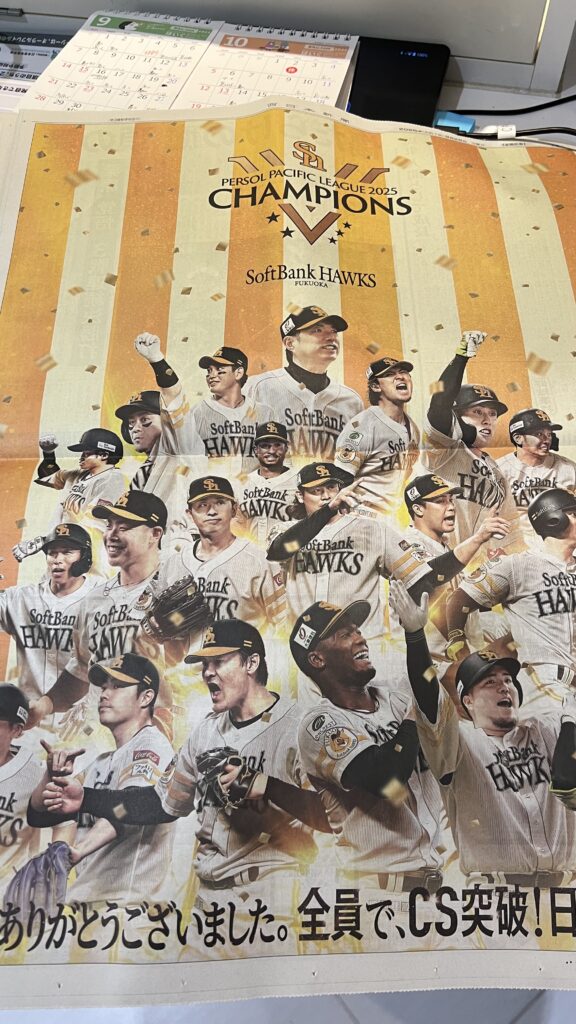 先週末土曜日についに福岡ソフトバンクホークスがペナント優勝!おめでとうございます!今年は4月の時点では借金7の最下位からの優勝!主力選手のケガの離脱者が続出する中で、若手、中堅選手が活躍しての優勝は喜びもひとしおですね!流石!チーム力、組織力、この力も大事ですがやっぱりこのチームワークが一番重要ですね!改めて組織力の大切さを思い知らされました!このままクライマックスシリーズ、日本シリーズ突破して優勝お願いします!私も微力ながら応援します!