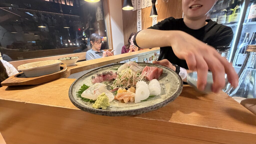 夕食は伊勢地元の酒屋さんが営んでいる「森下酒店」の日本酒と食事ができる地元では有名で人気店!「酒場 森下」さんへ!私と娘二人で予約してカウンター席で頂きましたが、その間に10組ほどの飛び込み客は全て入れないほどの人気でした!食べて、飲んで納得!それは全ての食べ物、お酒が美味い!最高のお店でした!
