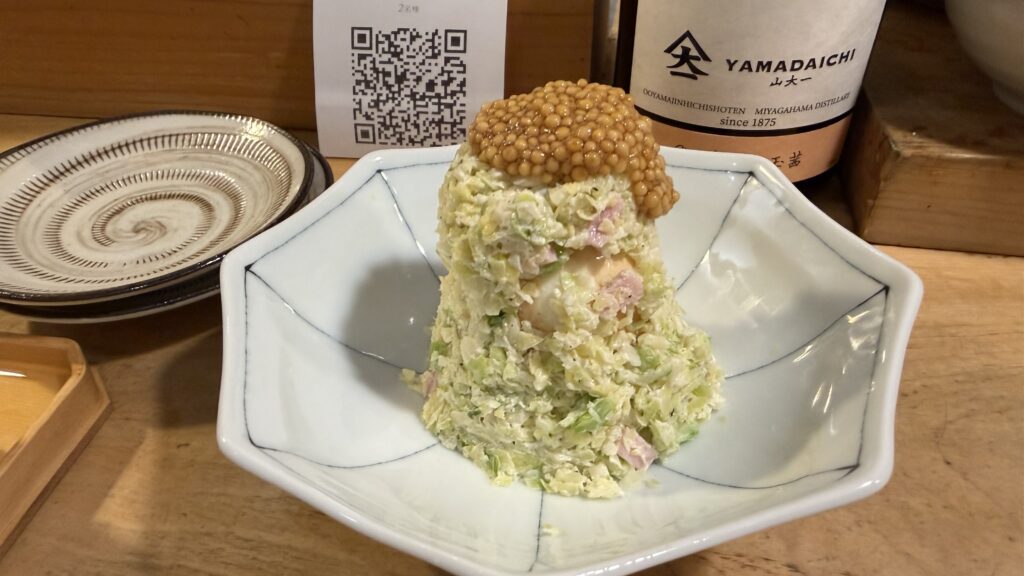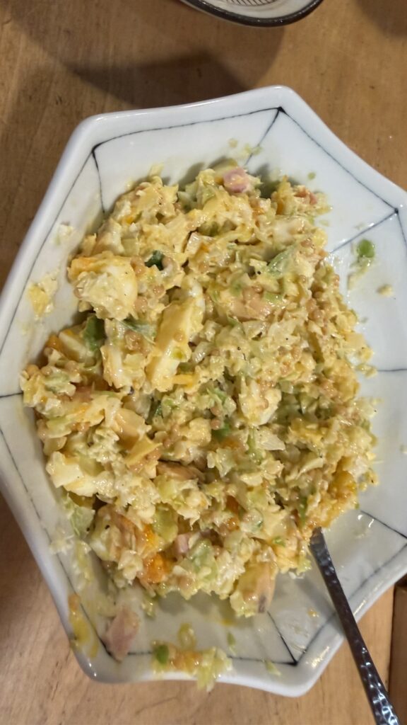 コールスローサラダ中に中に煮卵入り崩して混ぜて!