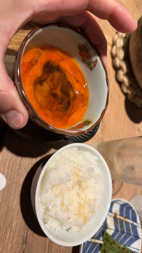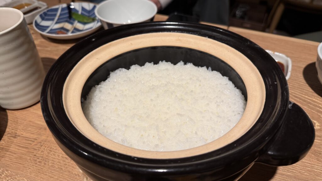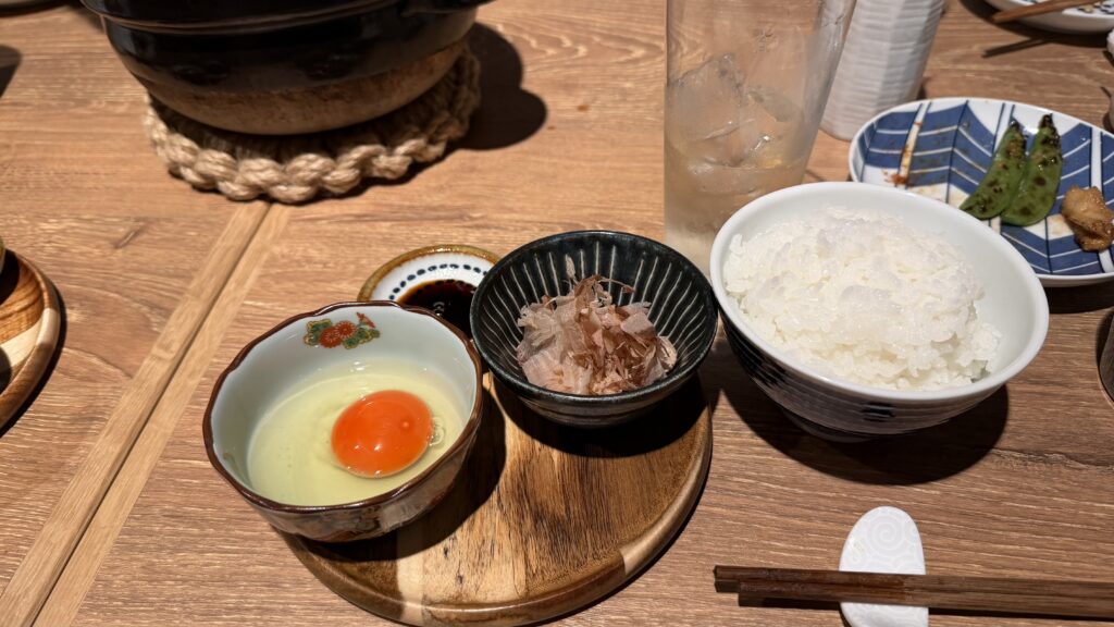 最後の締めは土鍋の炊き立てご飯で、卵かけご飯!美味い!