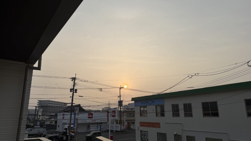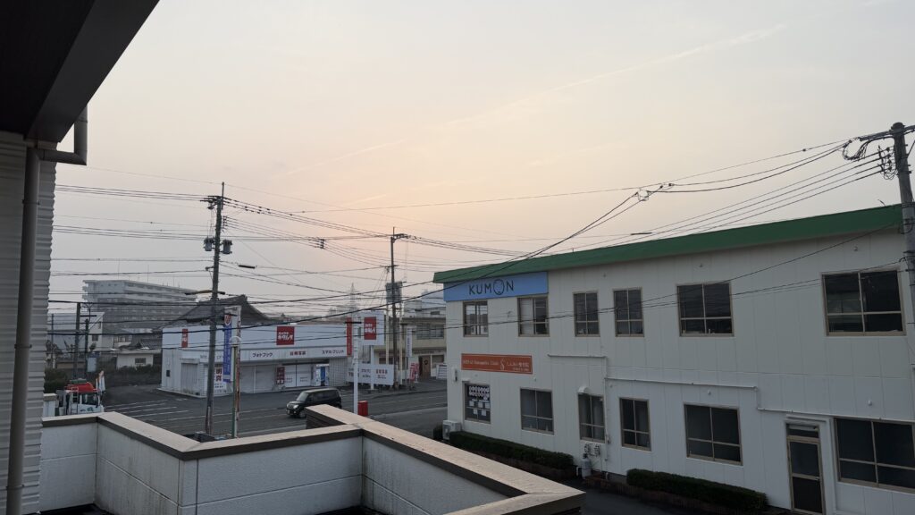 おはようございます!今朝の福岡県久留米市は、気温7℃のそこまで寒くない霧のかかった曇りの朝を迎えています!昨日の昼は20℃まで上がって、今朝は気温が下がったので濃霧が朝から覆っています。8時前でだいぶん霧もなくなって来ています!寒暖差が激しいので、体調管理には気おつけてお過ごしください。